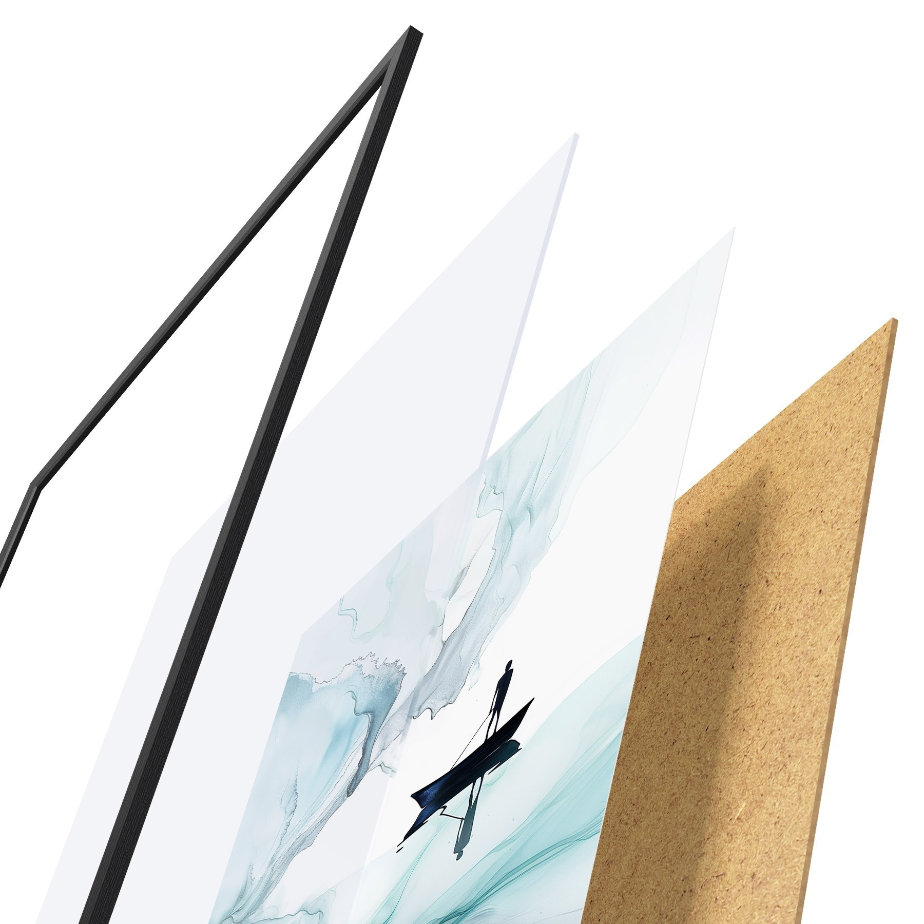 A poszter keretből, plexiből, nyomtatott képből és forgácslap hátlapból áll. A poszter a hátoldalon található rögzítőknek köszönhetően azonnal felakasztható a falra.