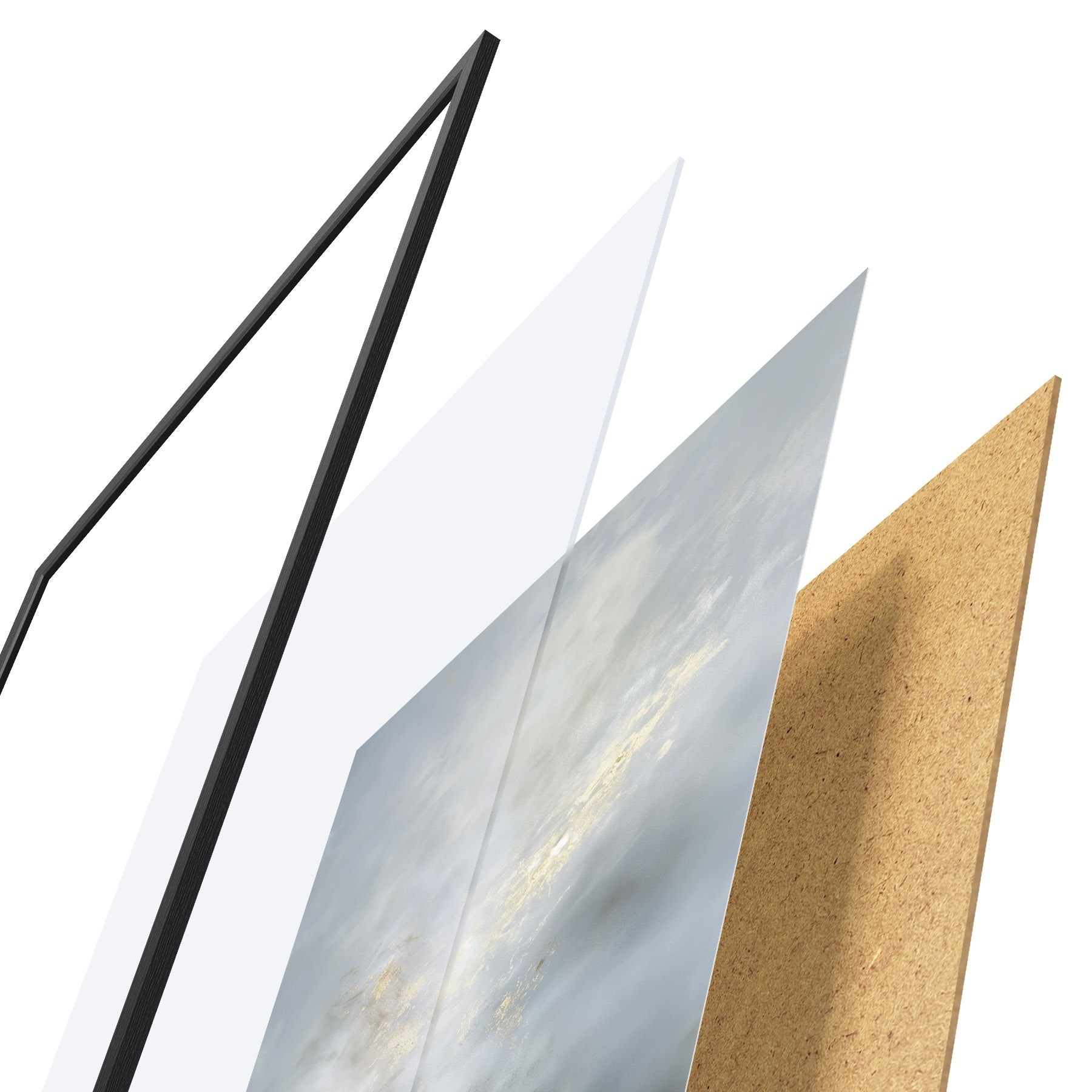 A poszter keretből, plexiből, nyomtatott képből és forgácslap hátlapból áll. A poszter a hátoldalon található rögzítőknek köszönhetően azonnal felakasztható a falra.