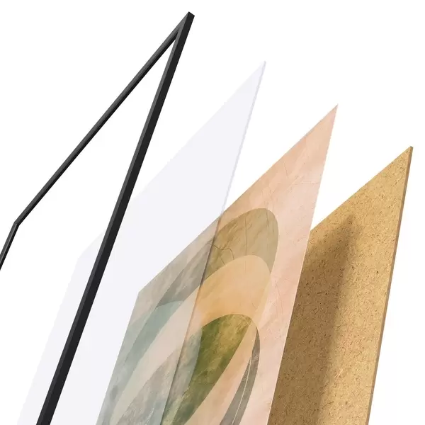 A poszter keretből, plexiből, nyomtatott képből és forgácslap hátlapból áll. A poszter a hátoldalon található rögzítőknek köszönhetően azonnal felakasztható a falra.