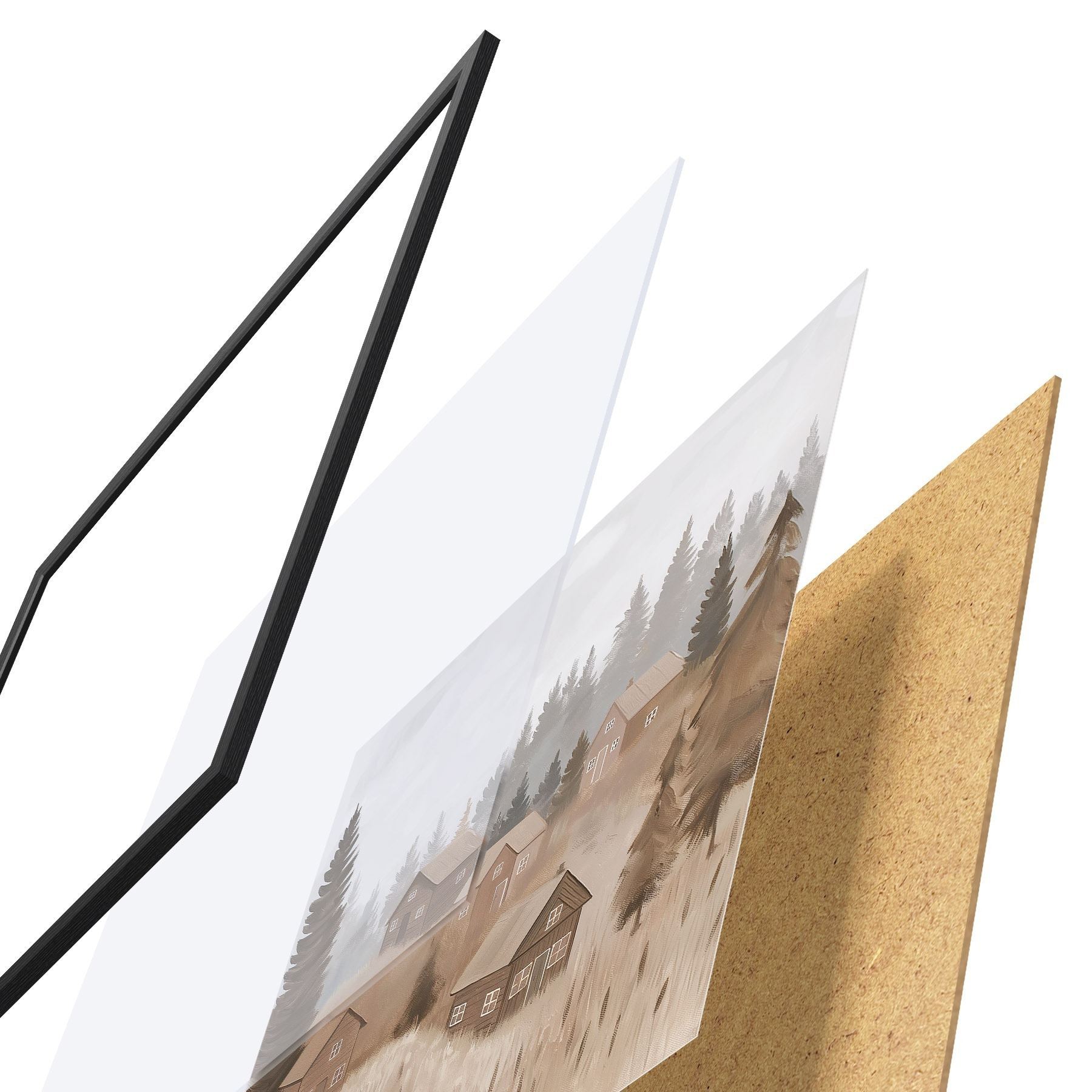 A poszter keretből, plexiből, nyomtatott képből és forgácslap hátlapból áll. A poszter a hátoldalon található rögzítőknek köszönhetően azonnal felakasztható a falra.