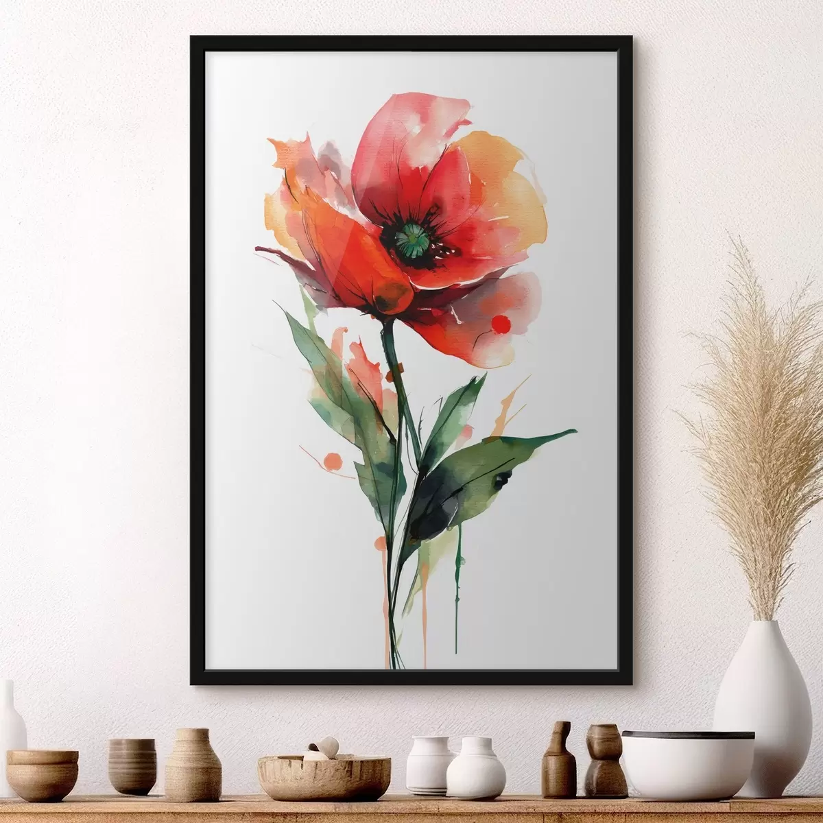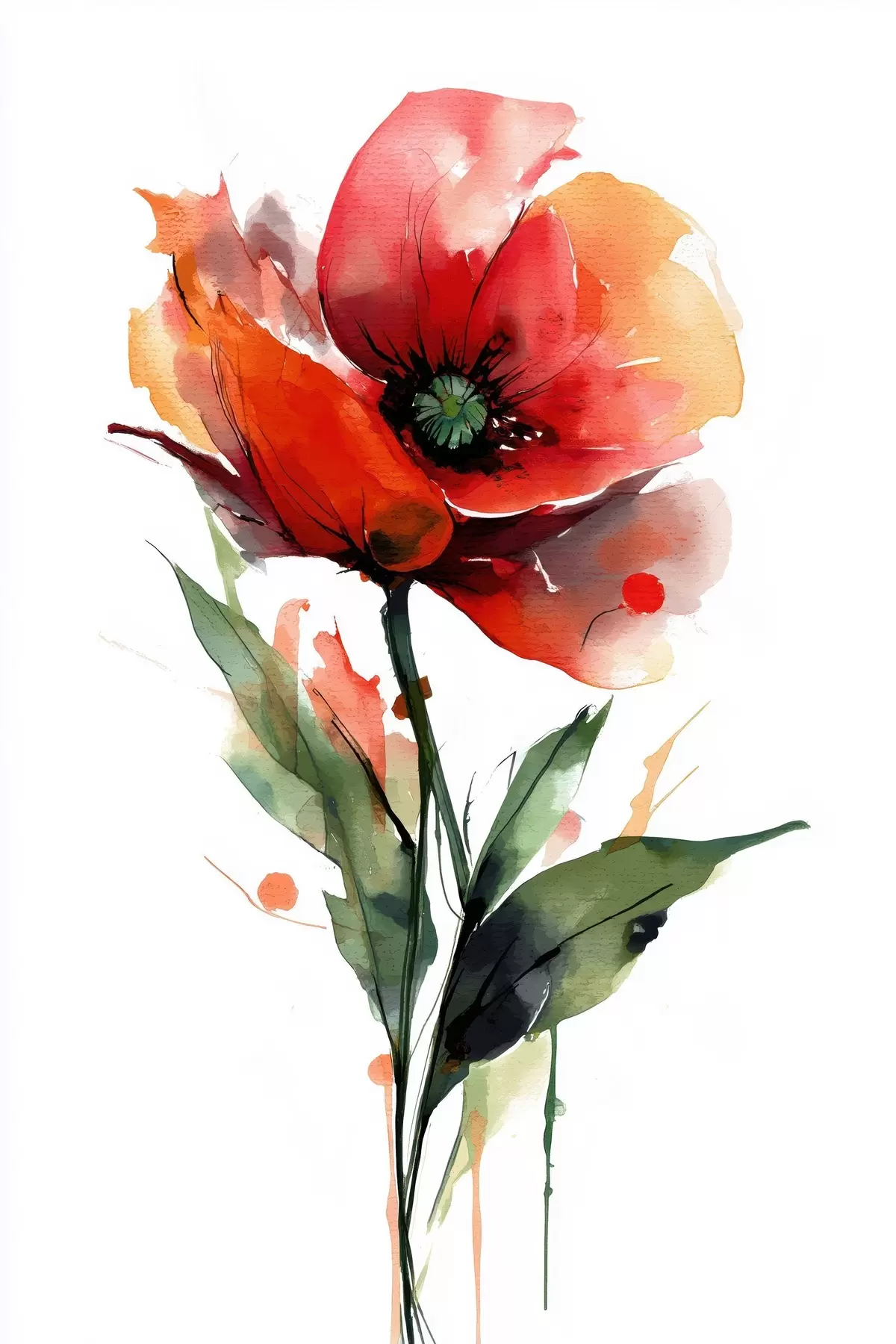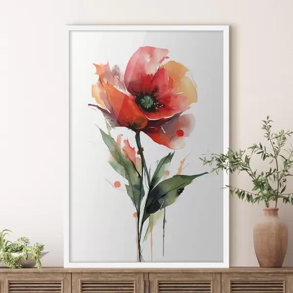 Poster Poppy virág kifejező akvarellfesték cseppekkel, modern művészeti illusztrációs stílusban Nr f47086