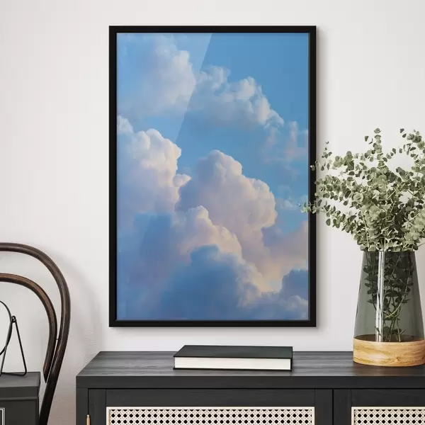 Poster Lágy kék és rózsaszín árnyalatú, fotórealisztikus digitális grafikai stílusú, terjedelmes felhők Nr f47088
