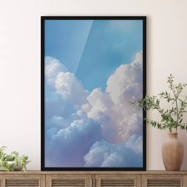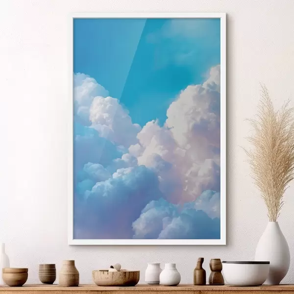 Poster Festői égbolt hatalmas fehér felhőkkel, digitális grafikai stílusban Nr f47089