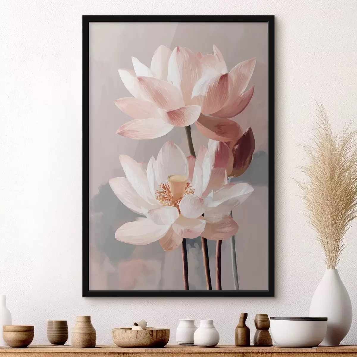 Poster Finom rózsaszín lótuszok pasztell háttér előtt, modern festészeti stílusban Nr f47092