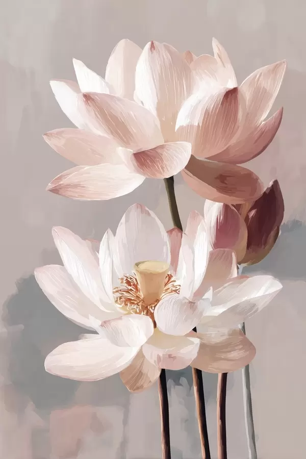 Poster Finom rózsaszín lótuszok pasztell háttér előtt, modern festészeti stílusban Nr f47092