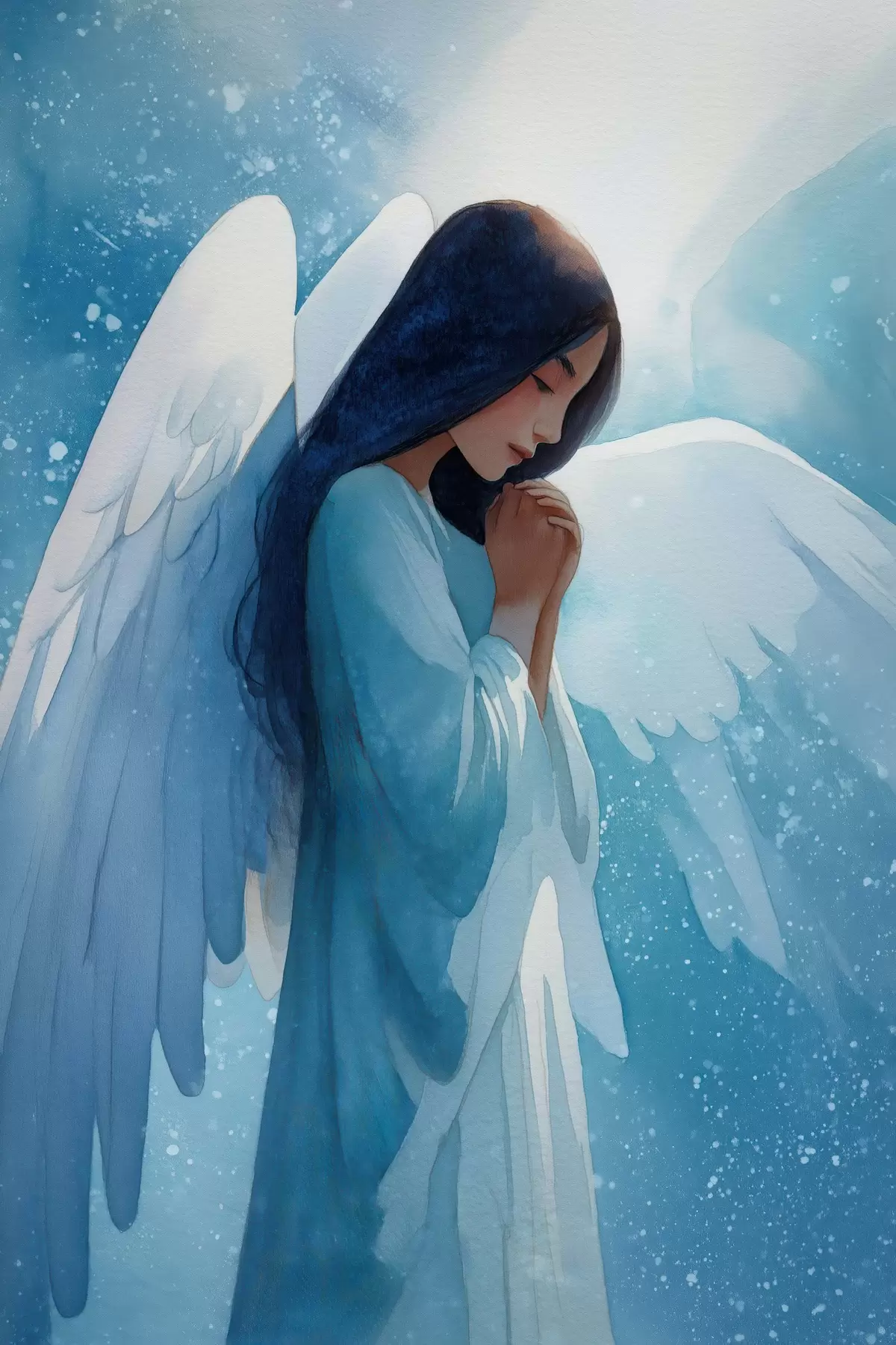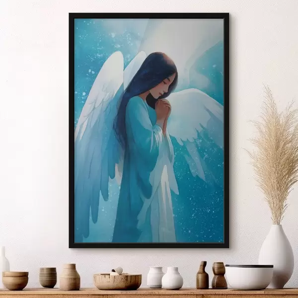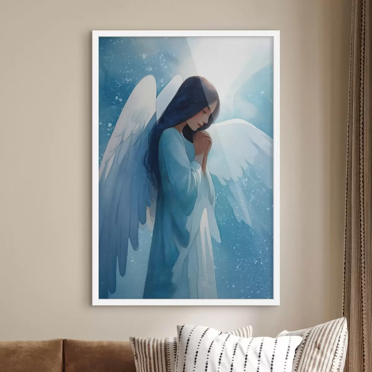 Poster Akvarell harmónia: angyal fényben kék háttér előtt Nr f47094