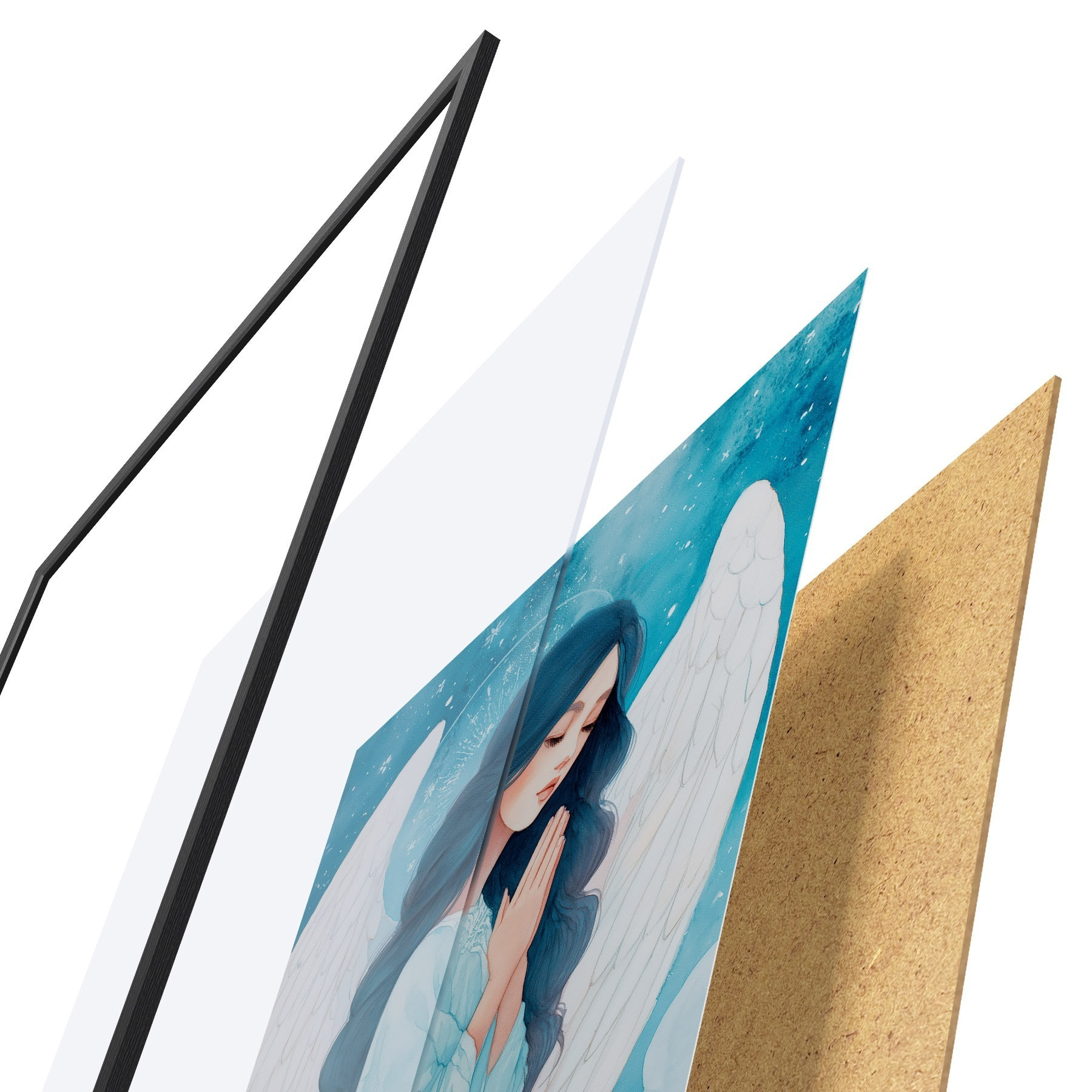 A poszter keretből, plexiből, nyomtatott képből és forgácslap hátlapból áll. A poszter a hátoldalon található rögzítőknek köszönhetően azonnal felakasztható a falra.