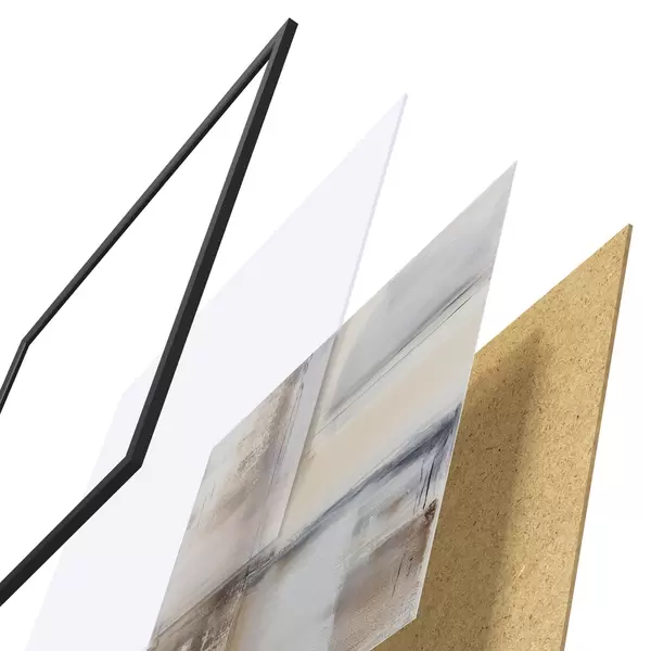 A poszter keretből, plexiből, nyomtatott képből és forgácslap hátlapból áll. A poszter a hátoldalon található rögzítőknek köszönhetően azonnal felakasztható a falra.