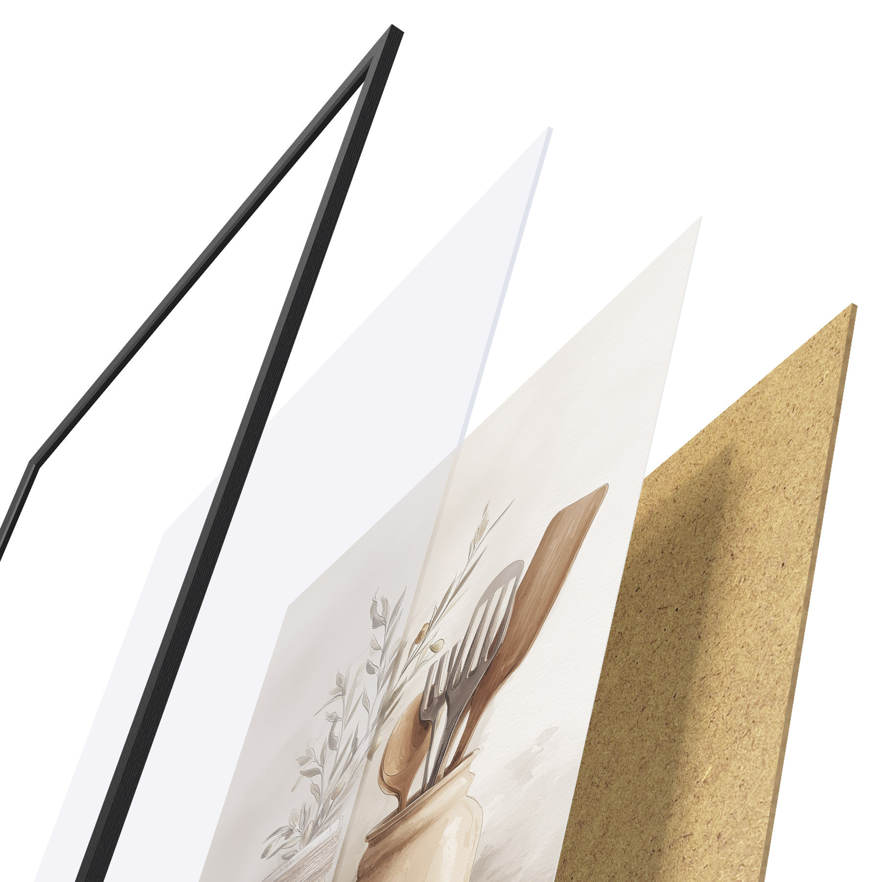 A poszter keretből, plexiből, nyomtatott képből és forgácslap hátlapból áll. A poszter a hátoldalon található rögzítőknek köszönhetően azonnal felakasztható a falra.