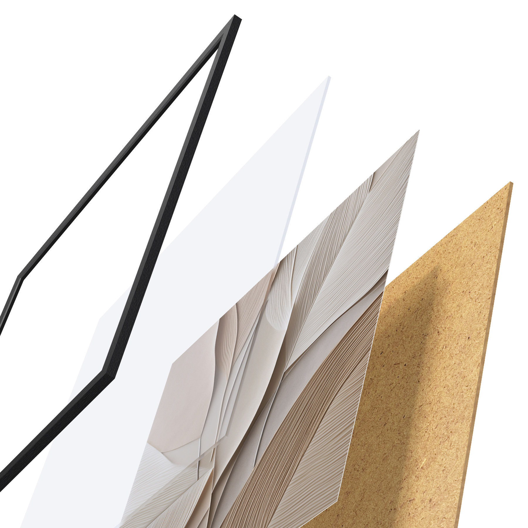 A poszter keretből, plexiből, nyomtatott képből és forgácslap hátlapból áll. A poszter a hátoldalon található rögzítőknek köszönhetően azonnal felakasztható a falra.