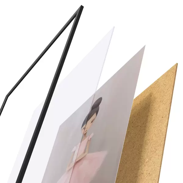 A poszter keretből, plexiből, nyomtatott képből és forgácslap hátlapból áll. A poszter a hátoldalon található rögzítőknek köszönhetően azonnal felakasztható a falra.