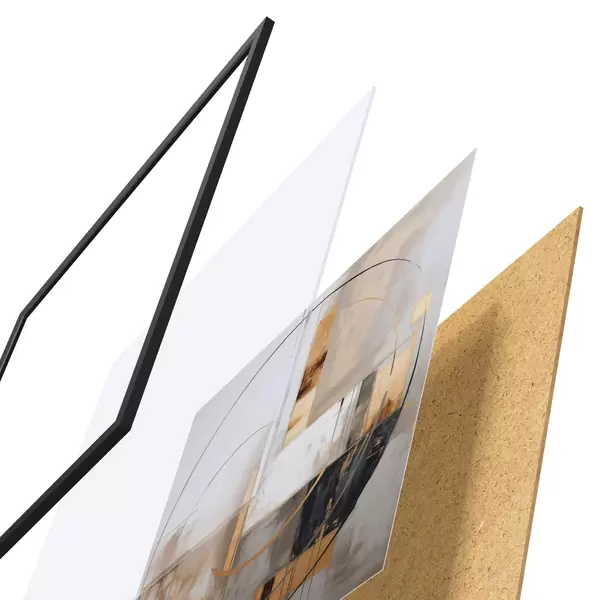A poszter keretből, plexiből, nyomtatott képből és forgácslap hátlapból áll. A poszter a hátoldalon található rögzítőknek köszönhetően azonnal felakasztható a falra.