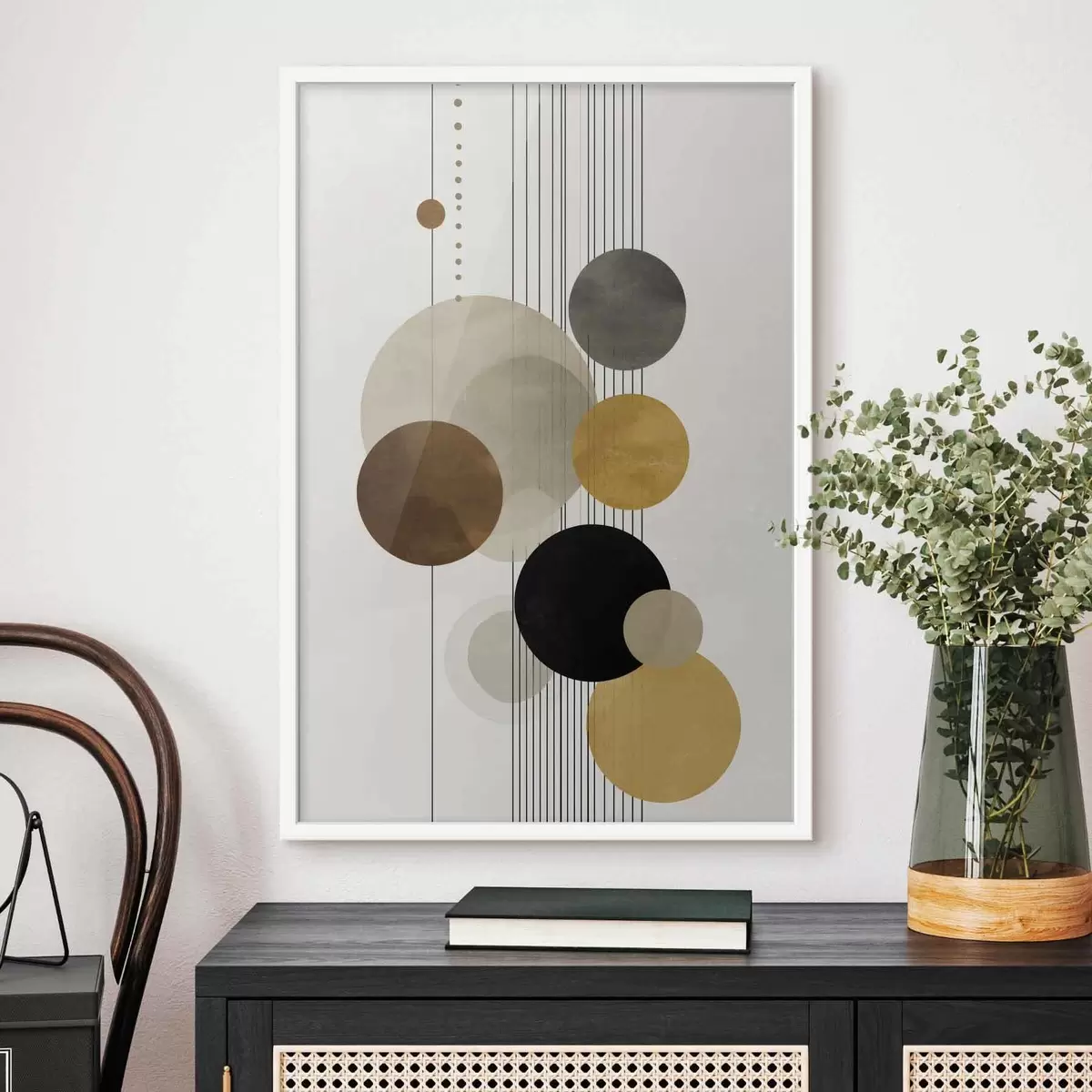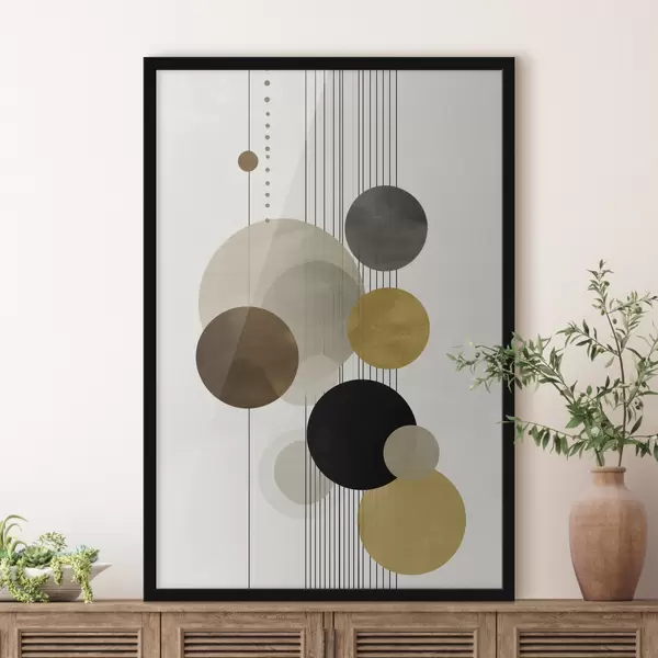 Poster absztrakció körökkel és vonalakkal meleg színekben Nr f47237