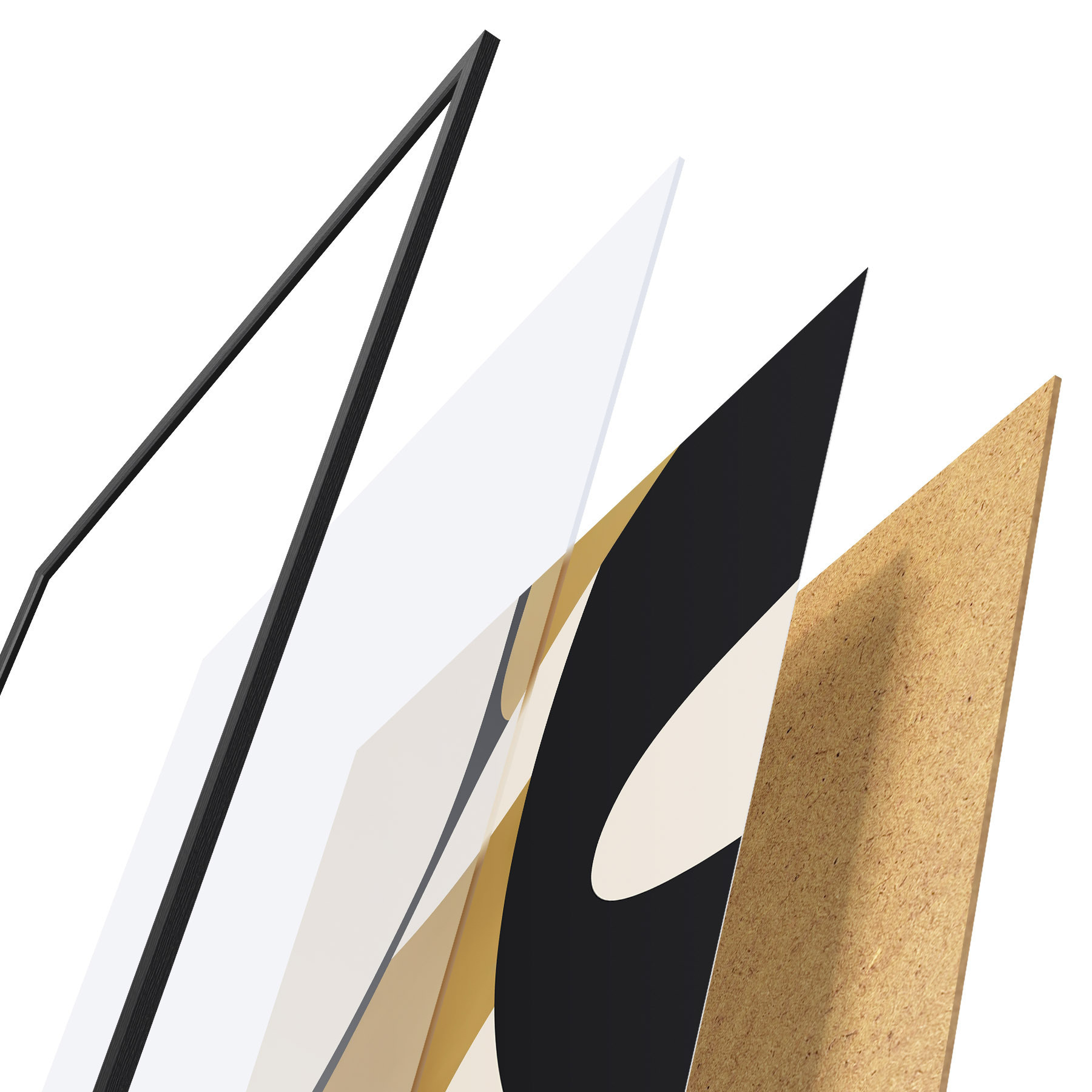 A poszter keretből, plexiből, nyomtatott képből és forgácslap hátlapból áll. A poszter a hátoldalon található rögzítőknek köszönhetően azonnal felakasztható a falra.