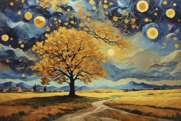 Poster Táj egy fával és élénk csillagos éggel Nr f47255