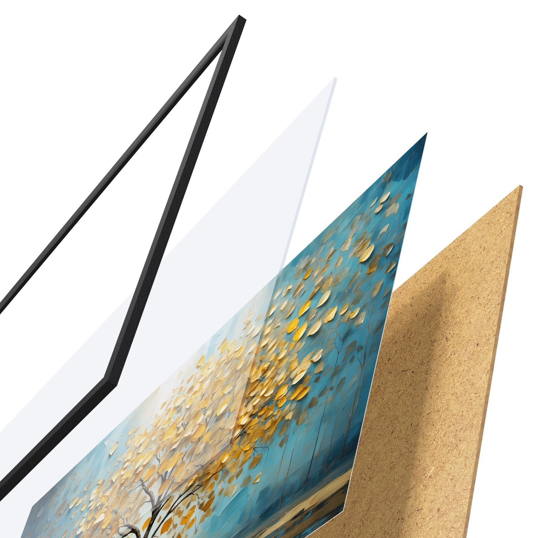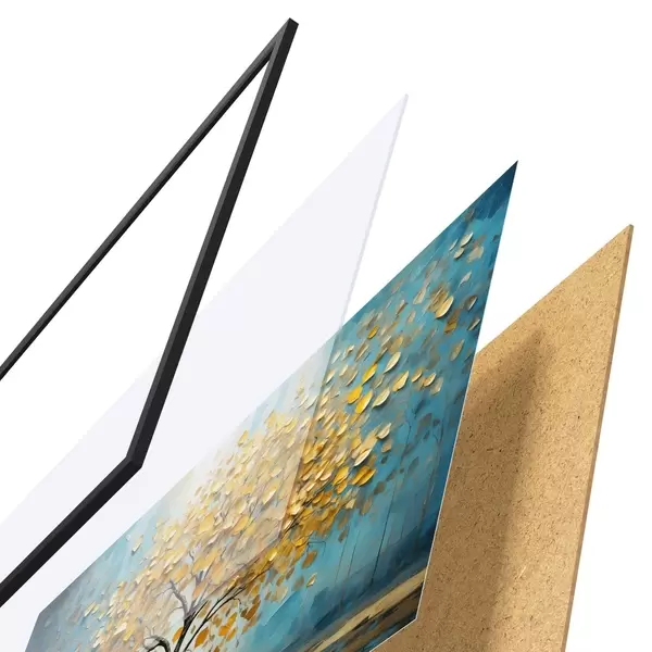 A poszter keretből, plexiből, nyomtatott képből és forgácslap hátlapból áll. A poszter a hátoldalon található rögzítőknek köszönhetően azonnal felakasztható a falra.