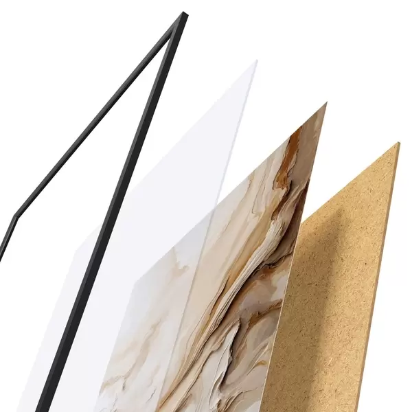 A poszter keretből, plexiből, nyomtatott képből és forgácslap hátlapból áll. A poszter a hátoldalon található rögzítőknek köszönhetően azonnal felakasztható a falra.