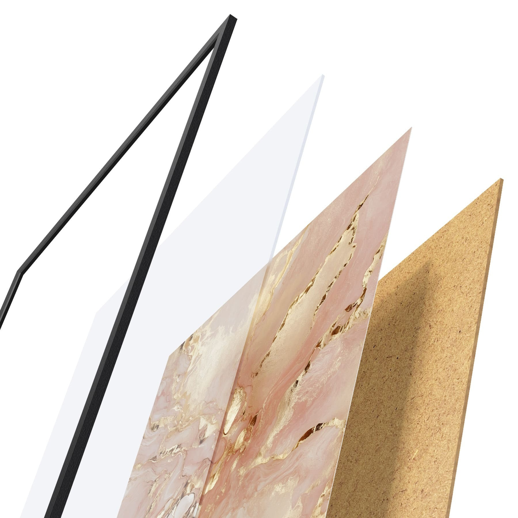 A poszter keretből, plexiből, nyomtatott képből és forgácslap hátlapból áll. A poszter a hátoldalon található rögzítőknek köszönhetően azonnal felakasztható a falra.