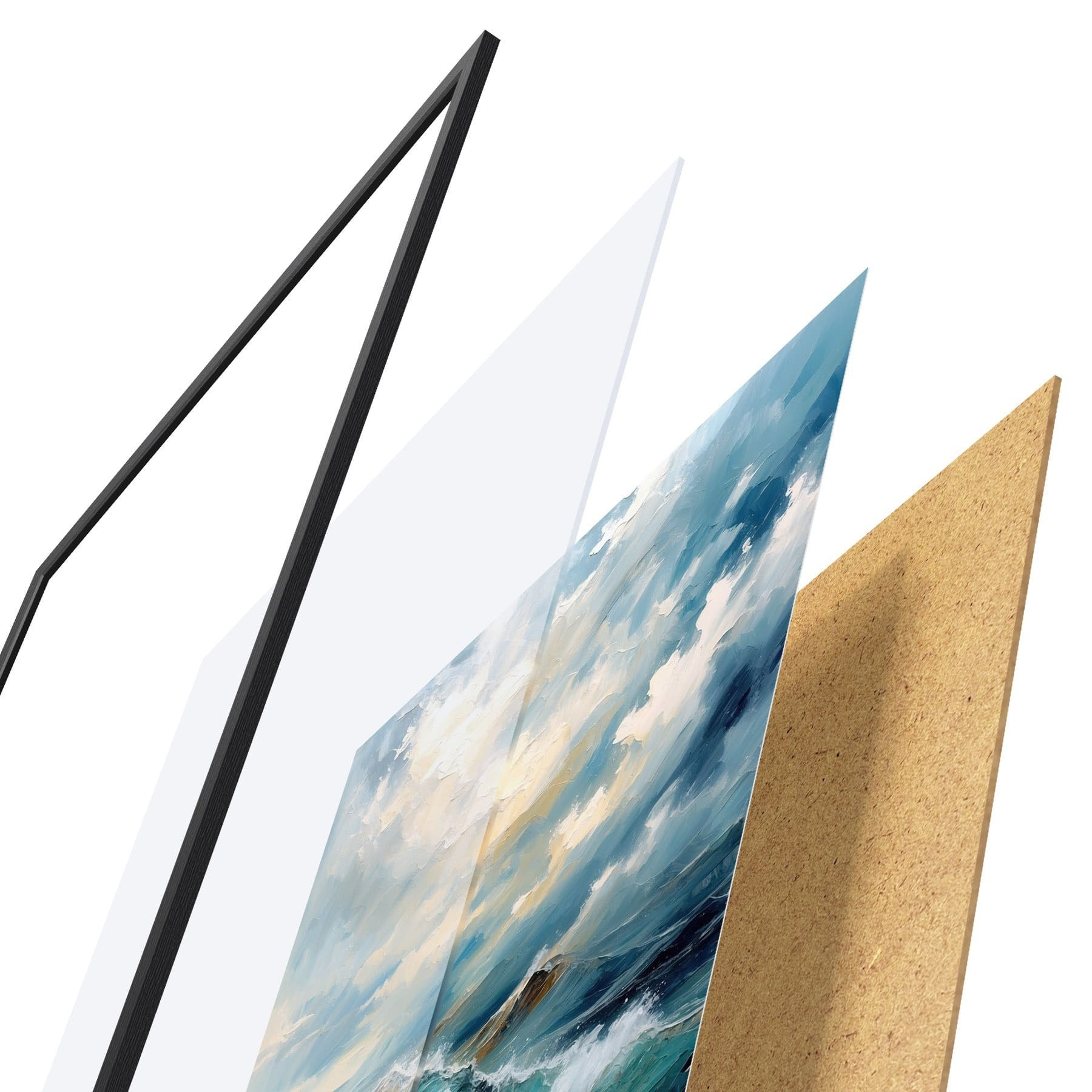 A poszter keretből, plexiből, nyomtatott képből és forgácslap hátlapból áll. A poszter a hátoldalon található rögzítőknek köszönhetően azonnal felakasztható a falra.