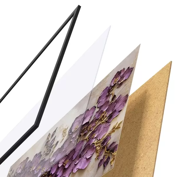 A poszter keretből, plexiből, nyomtatott képből és forgácslap hátlapból áll. A poszter a hátoldalon található rögzítőknek köszönhetően azonnal felakasztható a falra.