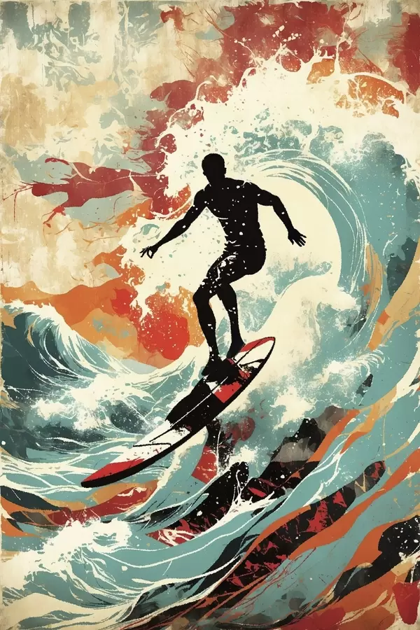 Poster Szörfös sziluett hullámokon, élénk színekben Nr f47284