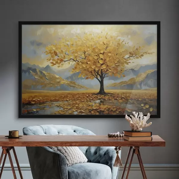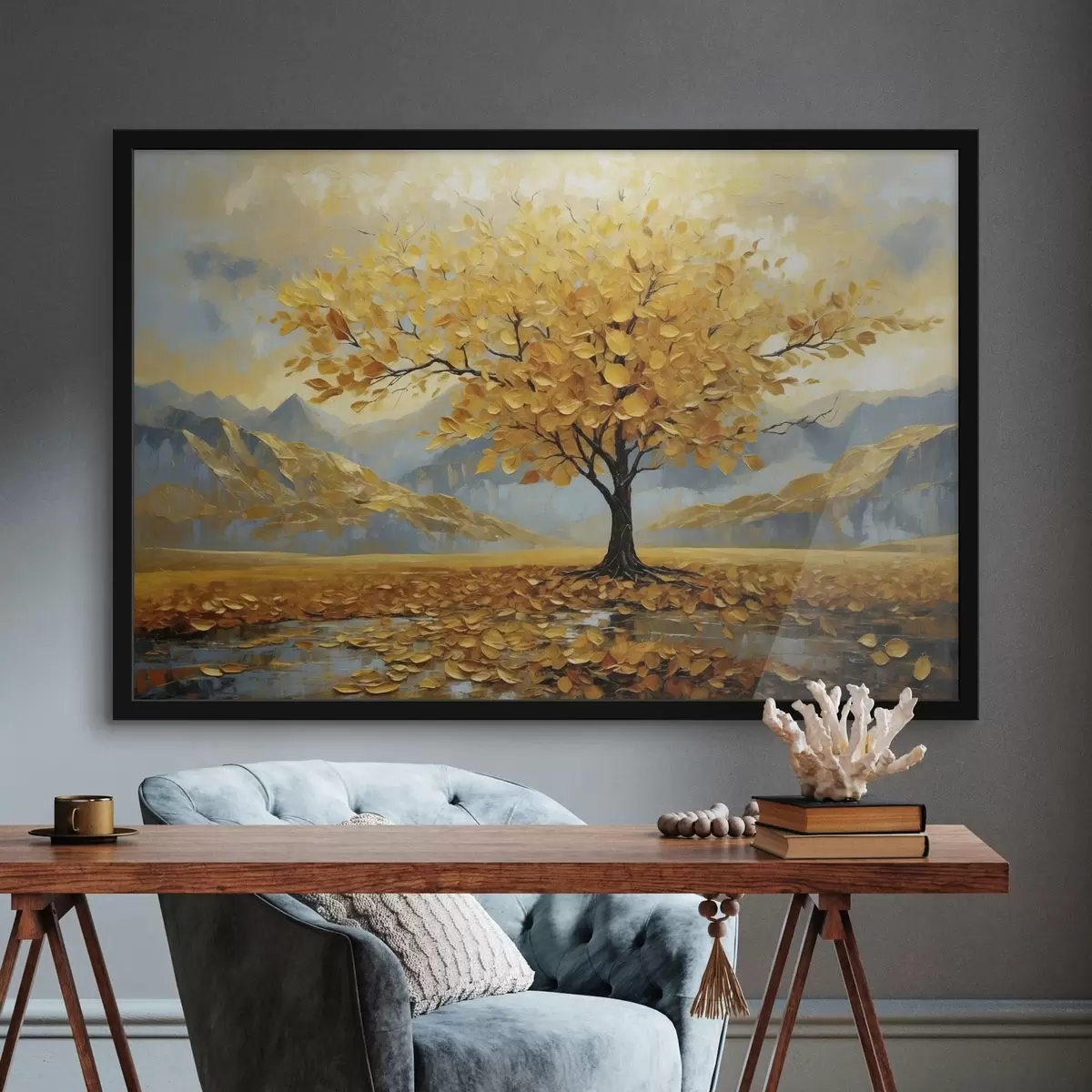 Poster Sárga levelű fa hegyvidéki tájban Nr f47285