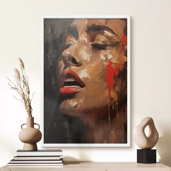 Poster Női portré meleg ecsetvonásokkal és vörös tónusokkal Nr f47294