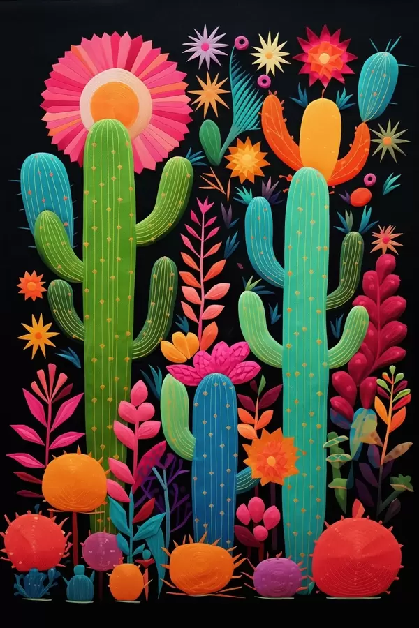 Poster Élénk kaktuszok és virágok sötét háttér előtt Nr f47297