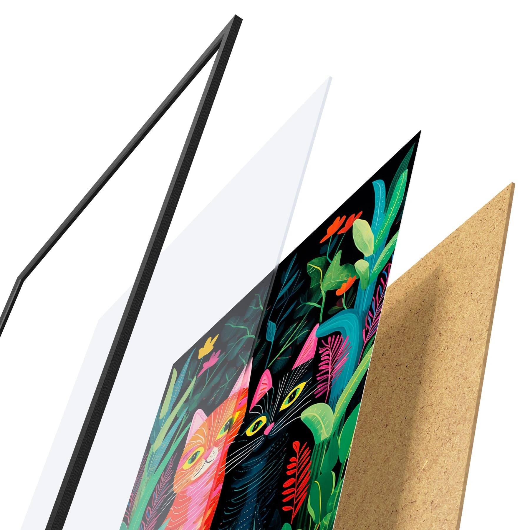 A poszter keretből, plexiből, nyomtatott képből és forgácslap hátlapból áll. A poszter a hátoldalon található rögzítőknek köszönhetően azonnal felakasztható a falra.