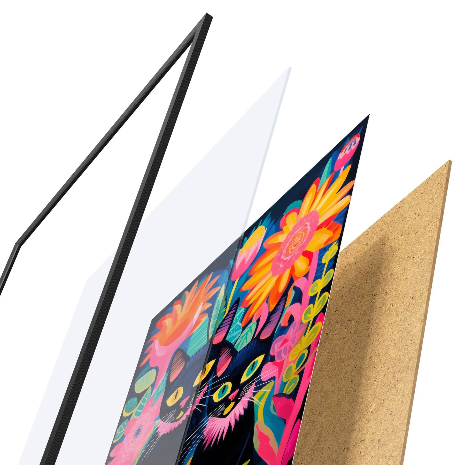 A poszter keretből, plexiből, nyomtatott képből és forgácslap hátlapból áll. A poszter a hátoldalon található rögzítőknek köszönhetően azonnal felakasztható a falra.