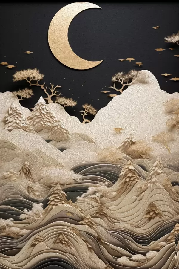 Poster Stilizált hegyek és fák a hold alatt Nr f47300