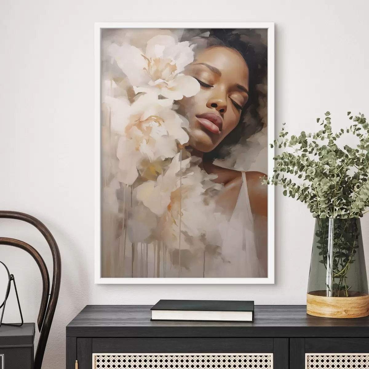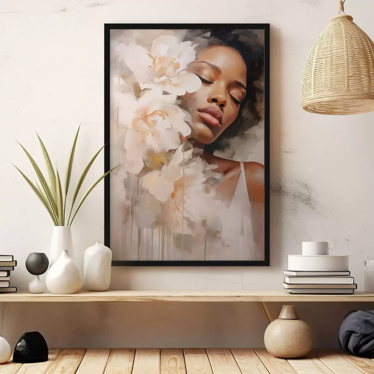 Plakát a sziklán Női portré nagy virágok mellett f47307