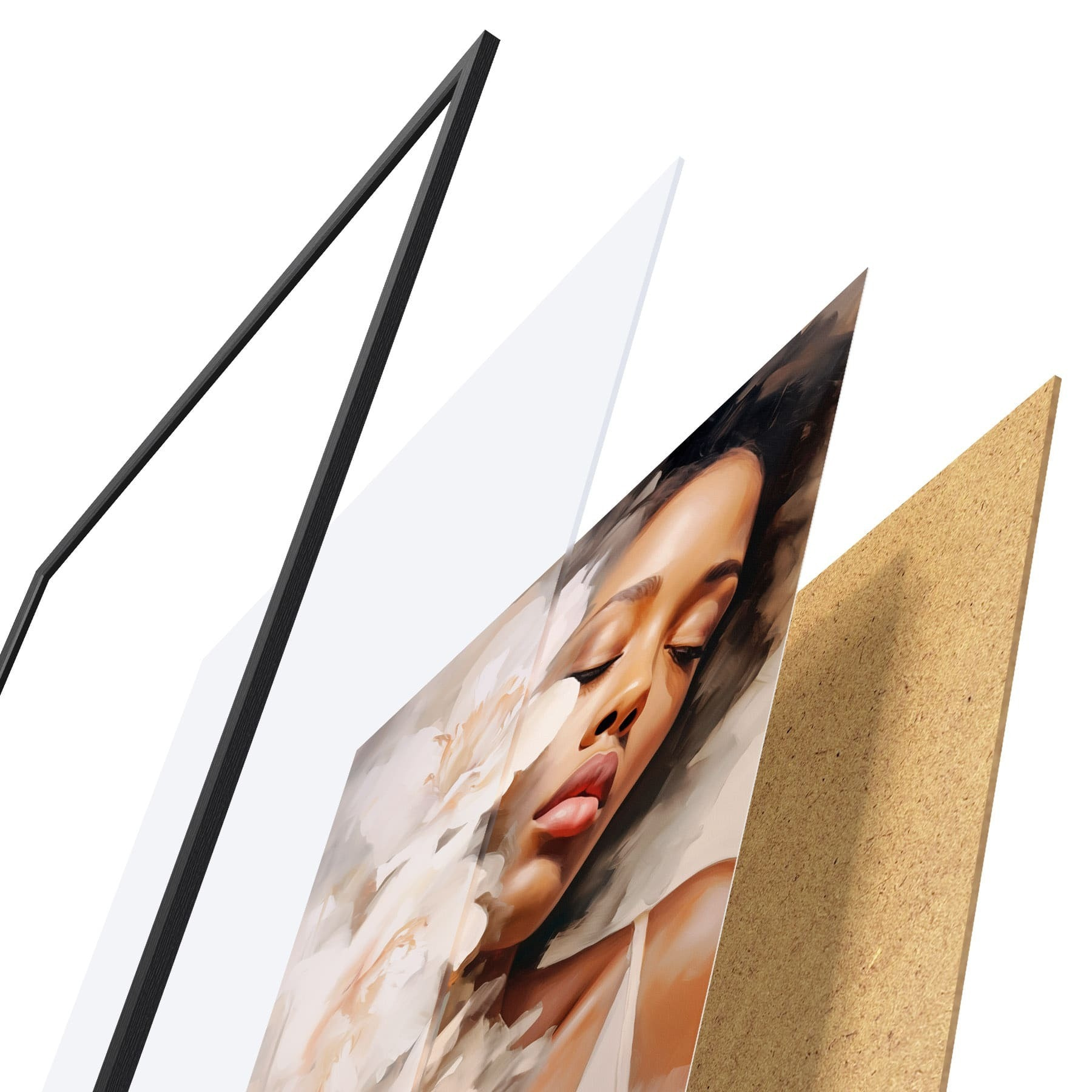 A poszter keretből, plexiből, nyomtatott képből és forgácslap hátlapból áll. A poszter a hátoldalon található rögzítőknek köszönhetően azonnal felakasztható a falra.