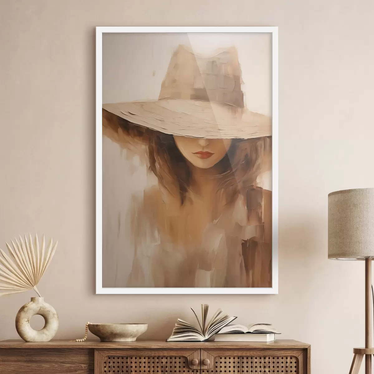Poster Kalapos nő meleg, absztrakt ecsetvonásokkal Nr f47312