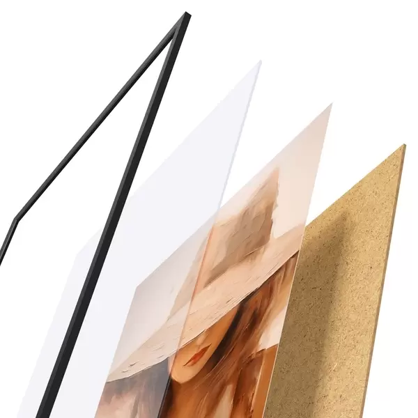 A poszter keretből, plexiből, nyomtatott képből és forgácslap hátlapból áll. A poszter a hátoldalon található rögzítőknek köszönhetően azonnal felakasztható a falra.