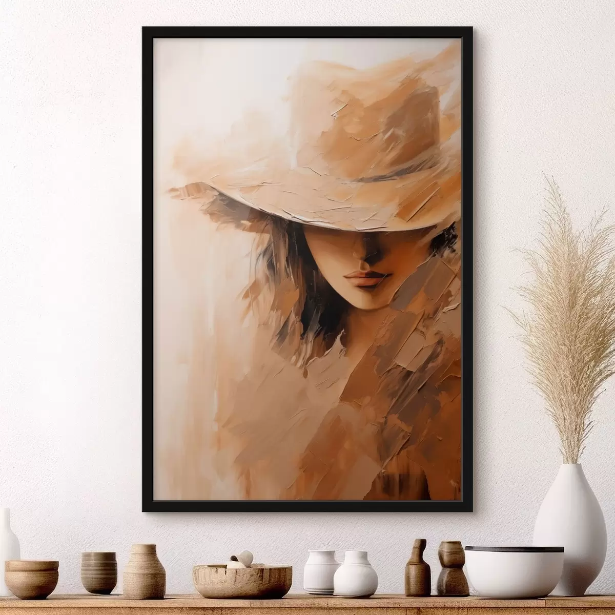 Poster Kalapos nő texturált, meleg ecsetvonásokkal Nr f47315