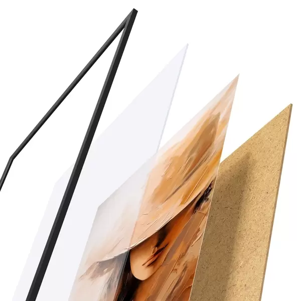 A poszter keretből, plexiből, nyomtatott képből és forgácslap hátlapból áll. A poszter a hátoldalon található rögzítőknek köszönhetően azonnal felakasztható a falra.