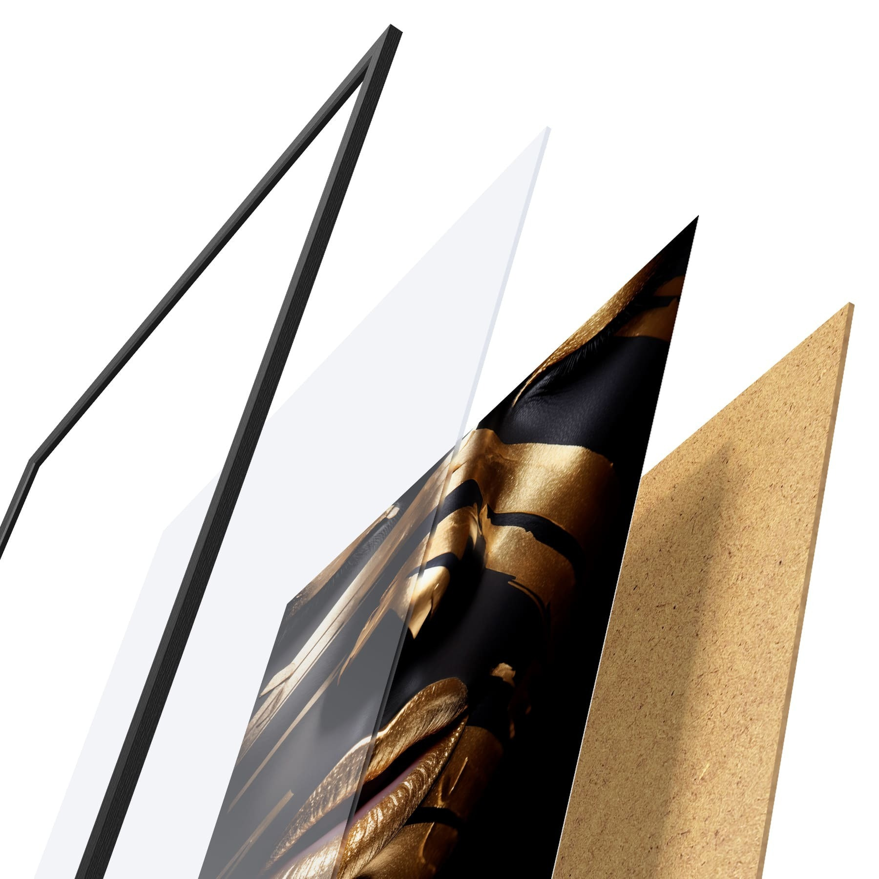 A poszter keretből, plexiből, nyomtatott képből és forgácslap hátlapból áll. A poszter a hátoldalon található rögzítőknek köszönhetően azonnal felakasztható a falra.