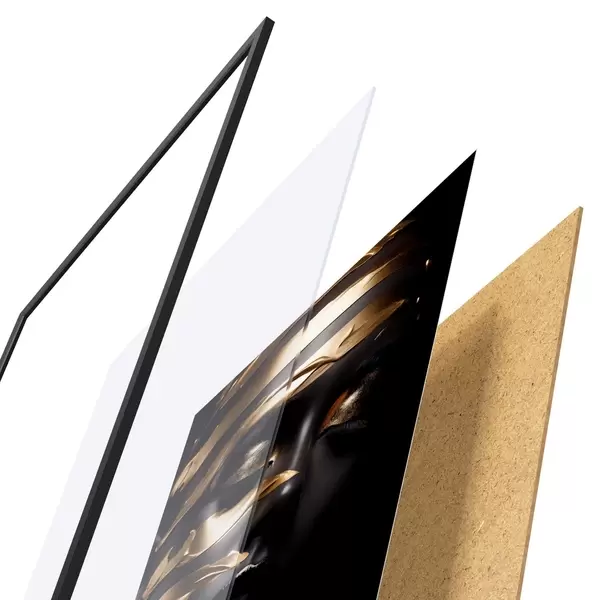 A poszter keretből, plexiből, nyomtatott képből és forgácslap hátlapból áll. A poszter a hátoldalon található rögzítőknek köszönhetően azonnal felakasztható a falra.