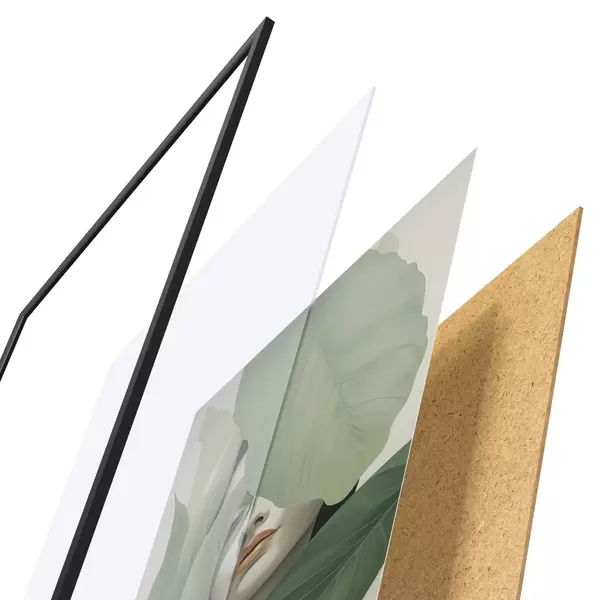 A poszter keretből, plexiből, nyomtatott képből és forgácslap hátlapból áll. A poszter a hátoldalon található rögzítőknek köszönhetően azonnal felakasztható a falra.