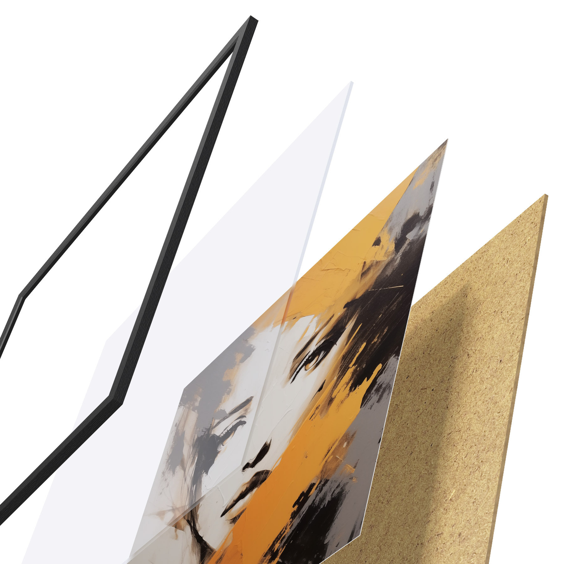 A poszter keretből, plexiből, nyomtatott képből és forgácslap hátlapból áll. A poszter a hátoldalon található rögzítőknek köszönhetően azonnal felakasztható a falra.