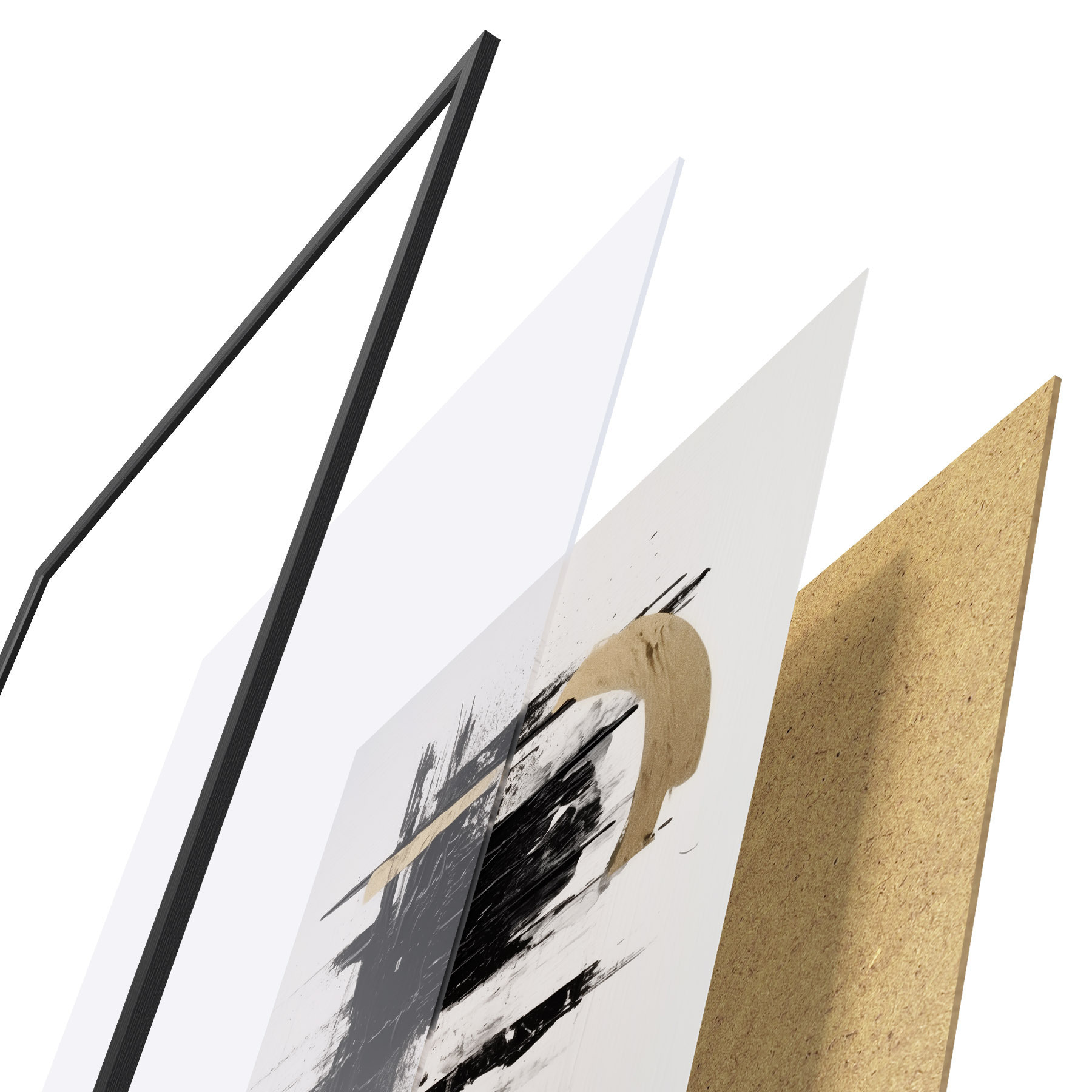 A poszter keretből, plexiből, nyomtatott képből és forgácslap hátlapból áll. A poszter a hátoldalon található rögzítőknek köszönhetően azonnal felakasztható a falra.