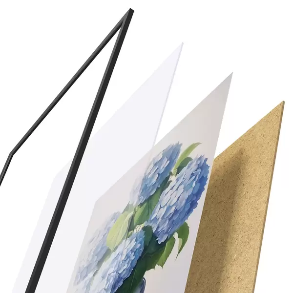 A poszter keretből, plexiből, nyomtatott képből és forgácslap hátlapból áll. A poszter a hátoldalon található rögzítőknek köszönhetően azonnal felakasztható a falra.