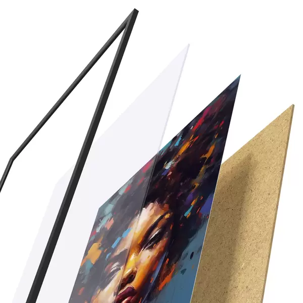A poszter keretből, plexiből, nyomtatott képből és forgácslap hátlapból áll. A poszter a hátoldalon található rögzítőknek köszönhetően azonnal felakasztható a falra.