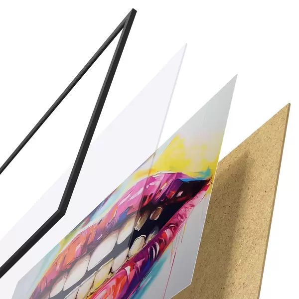 A poszter keretből, plexiből, nyomtatott képből és forgácslap hátlapból áll. A poszter a hátoldalon található rögzítőknek köszönhetően azonnal felakasztható a falra.