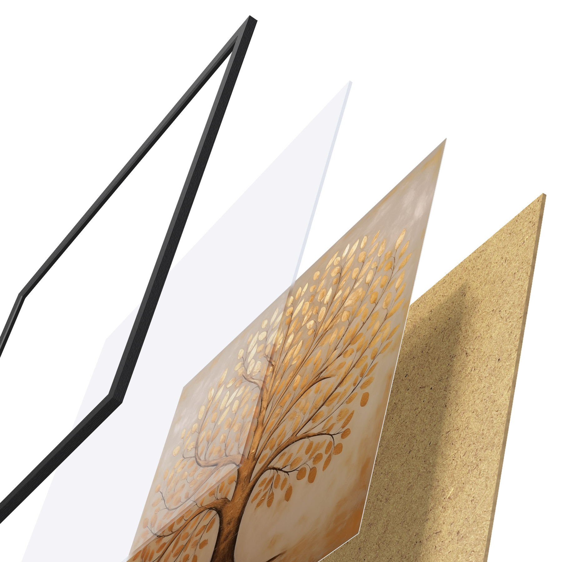 A poszter keretből, plexiből, nyomtatott képből és forgácslap hátlapból áll. A poszter a hátoldalon található rögzítőknek köszönhetően azonnal felakasztható a falra.