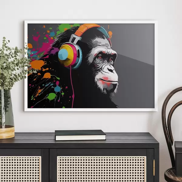 Poster Fejhallgatóval ellátott majom Nr f47385