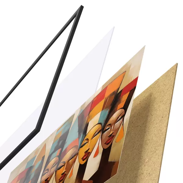 A poszter keretből, plexiből, nyomtatott képből és forgácslap hátlapból áll. A poszter a hátoldalon található rögzítőknek köszönhetően azonnal felakasztható a falra.