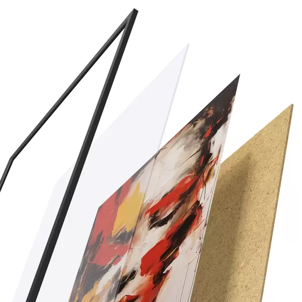 A poszter keretből, plexiből, nyomtatott képből és forgácslap hátlapból áll. A poszter a hátoldalon található rögzítőknek köszönhetően azonnal felakasztható a falra.
