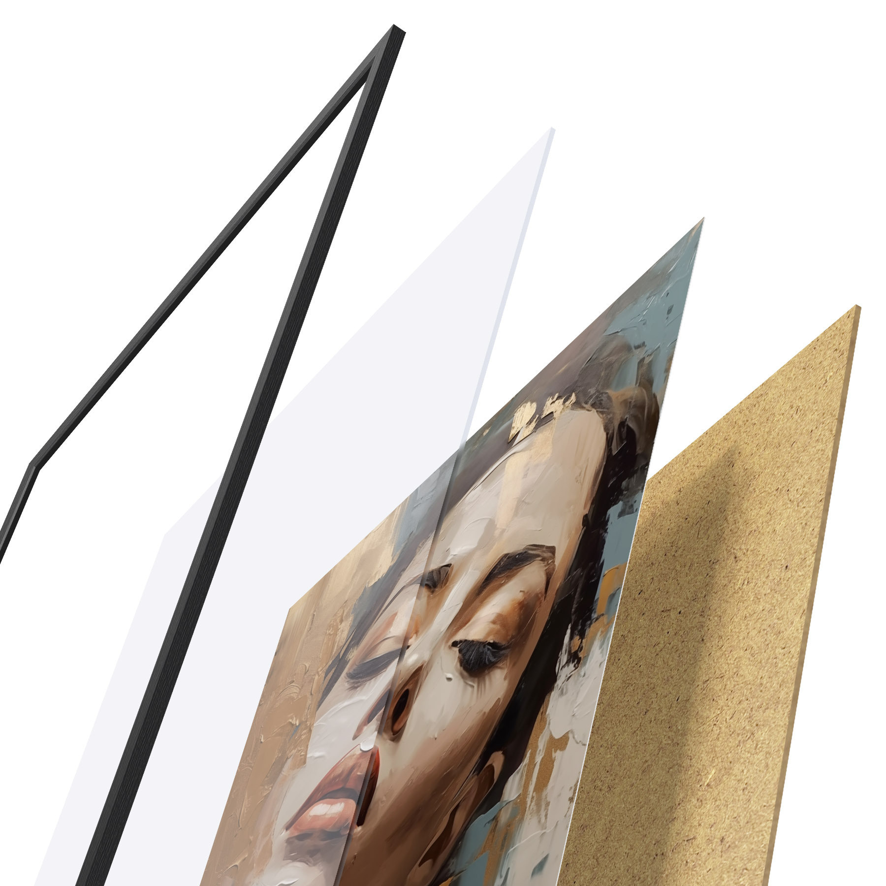A poszter keretből, plexiből, nyomtatott képből és forgácslap hátlapból áll. A poszter a hátoldalon található rögzítőknek köszönhetően azonnal felakasztható a falra.